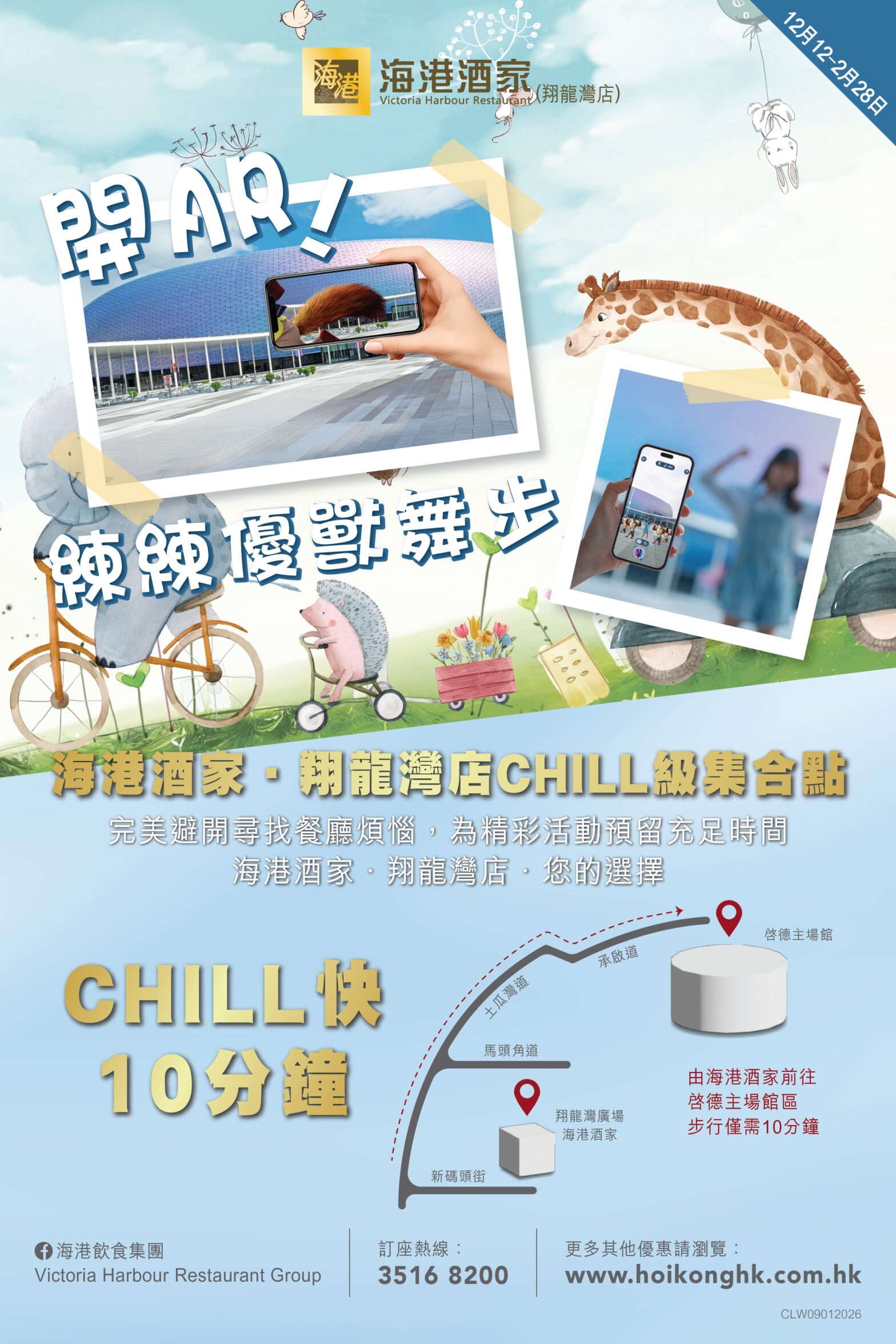 12月12至2月28日記得嚟啟德體育園AR派對,一齊開AR,練練優獸舞步!練完舞步有啲餓?記得嚟距離啟德主場只需10分鐘嘅CHILL級集合點—海港酒家翔龍灣店,完美避開人群,菜式仲啱晒一家大細✨